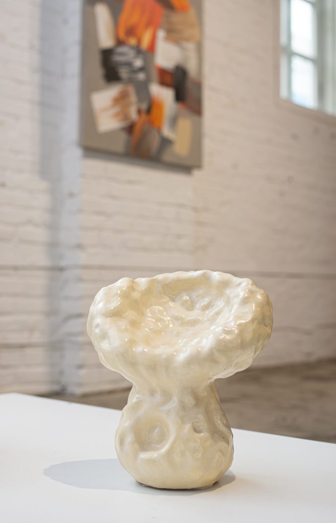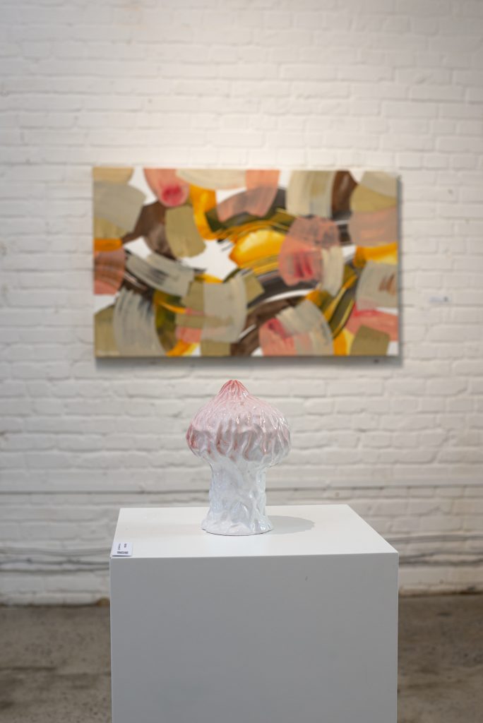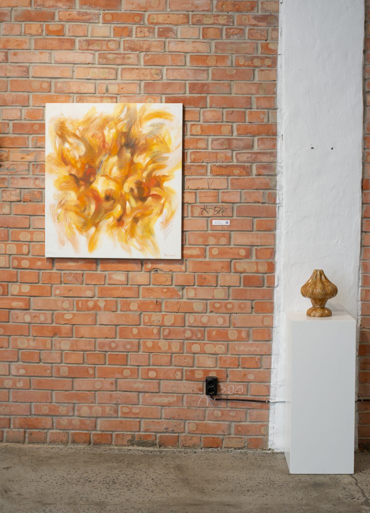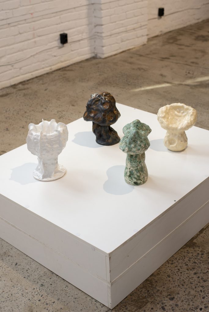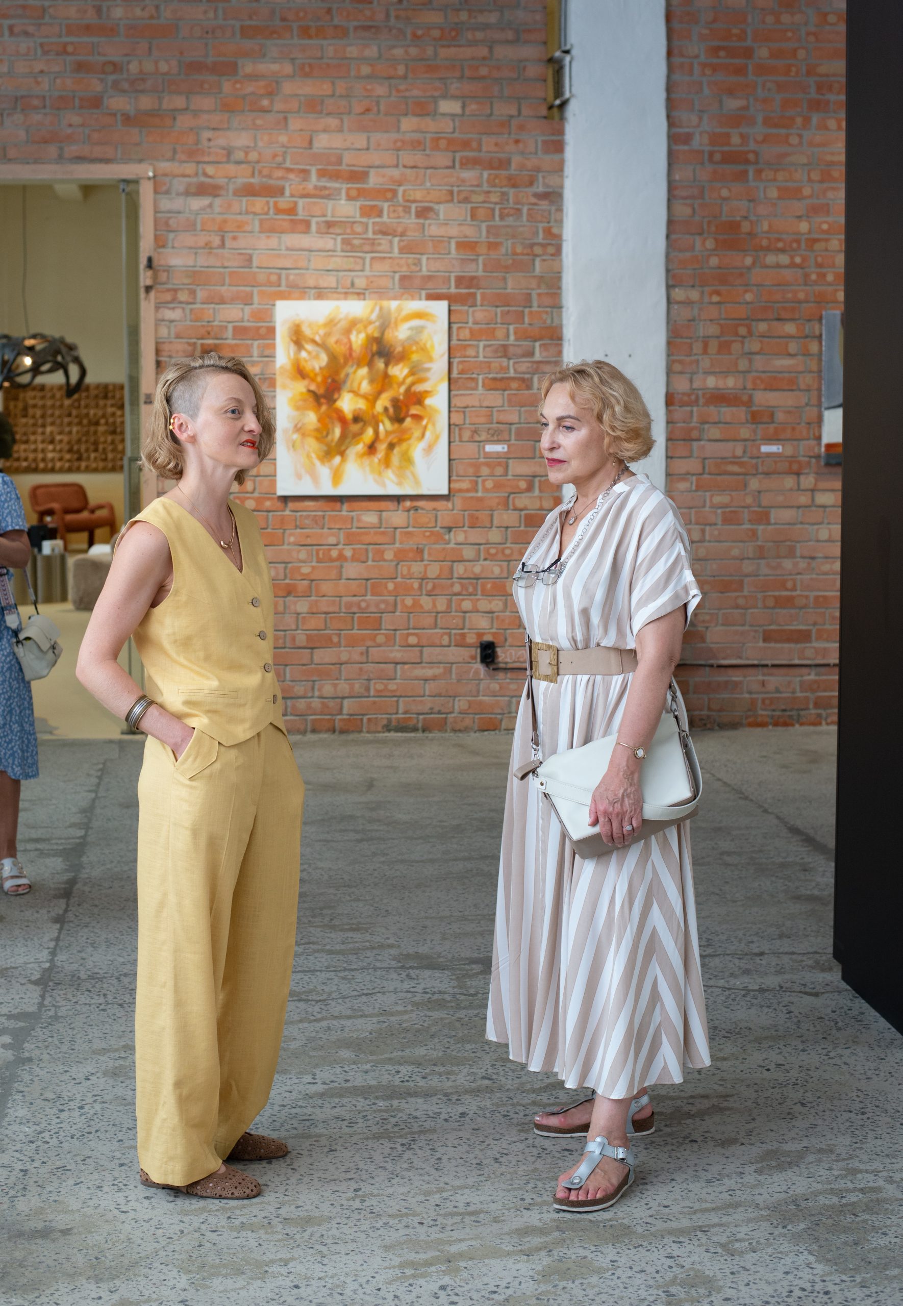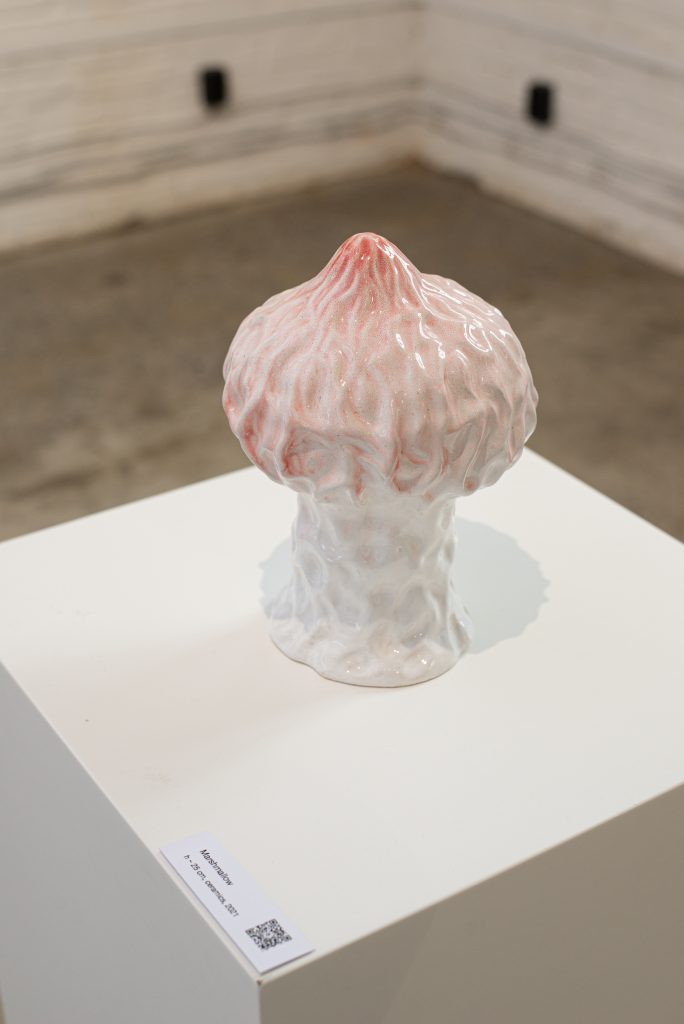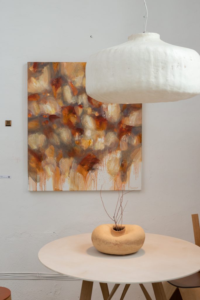 В живописних роботах прослідковується різна динаміка: від теплих і рухливих Serpen-time або Breathe Out-2, до філософсько-лагідної Let’s Talk або ледь вібруючої Mycelium. Частиною проєкту є 6 керамічних скульптур з серії Фантастичні Гриби, що підтримують загальну кольорову гаму.
