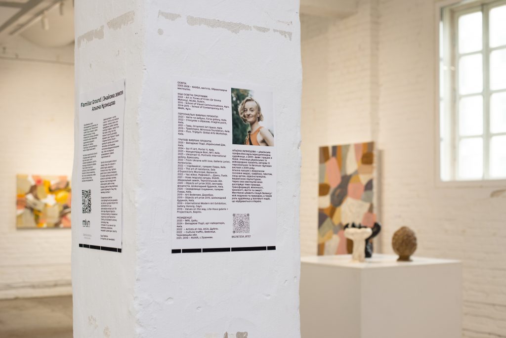 Familiar Ground доволі вільна в своєму генезі, бо в процесі я робила паузи, видихала, і починала знов, тому і картини доволі різні за своєю природою. Тут немає шаблону для всіх робіт, натомість серія жива і мінлива, картини по дві-три ведуть між собою діалог: деякі на тему кольору, деякі на тему композиції, а деякі підтримують тишу, таку важливу сьогодні.»