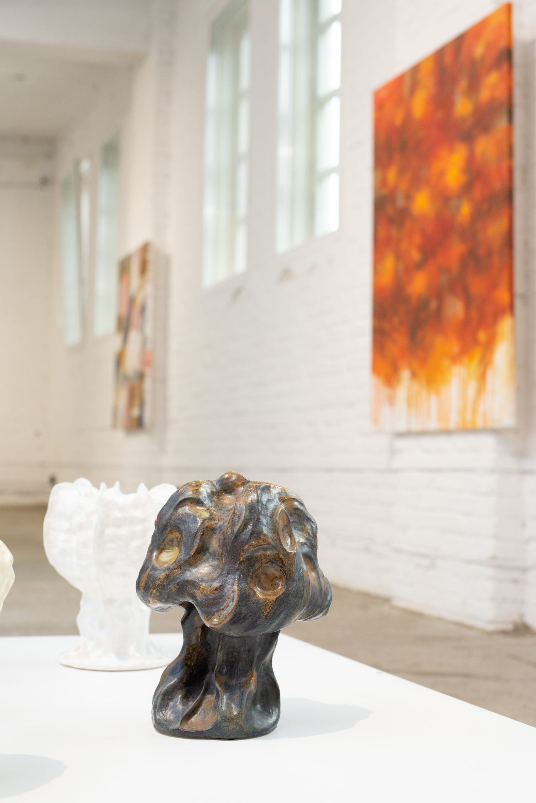 В живописних роботах прослідковується різна динаміка: від теплих і рухливих Serpen-time або Breathe Out-2, до філософсько-лагідної Let’s Talk або ледь вібруючої Mycelium. Частиною проєкту є 6 керамічних скульптур з серії Фантастичні Гриби, що підтримують загальну кольорову гаму.