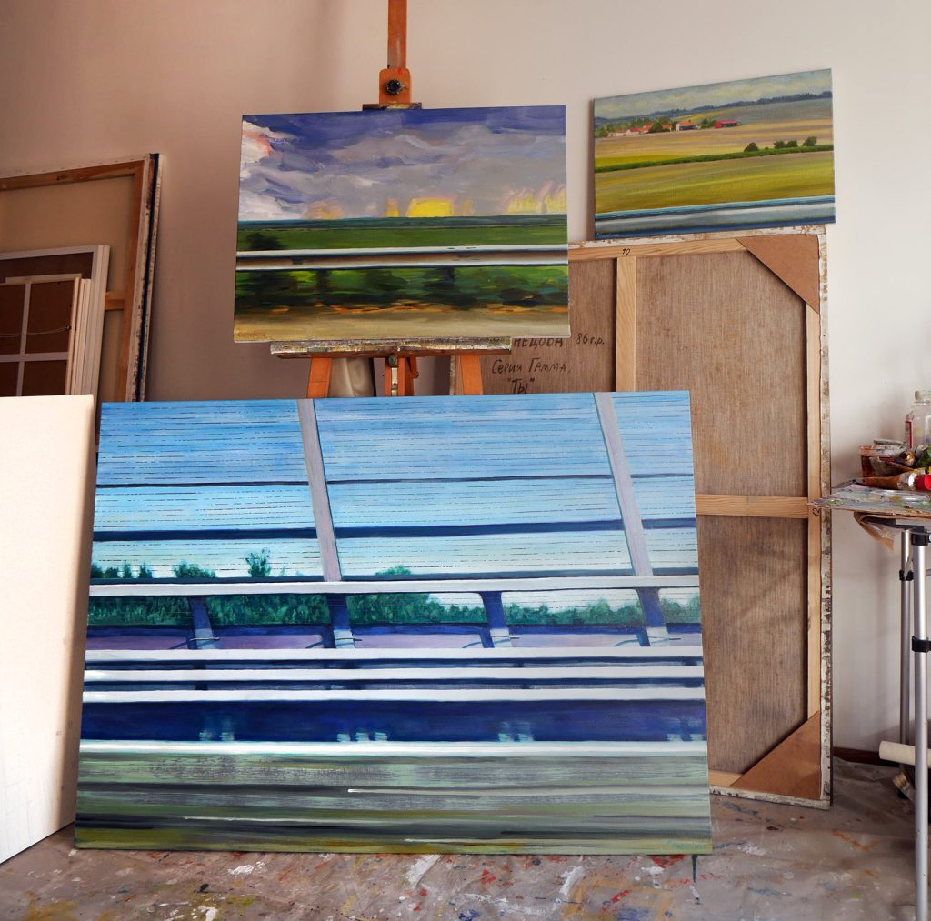 Following the beginning of Russia’s full-scale invasion of Ukraine in 2022, the project acquired a new layer of meaning. The works now evoke a heightened sense of fragility and temporariness. In recent years, the symbolic meaning of movement has changed profoundly. While travel may still offer expanded perspectives and opportunities — particularly for artists — it has also become more complicated and exhausting. With air travel unavailable from Ukraine, journeys have grown longer, familiar routes to the south remain inaccessible due to occupation, and some landscapes captured in these paintings may remain out of reach for years to come.