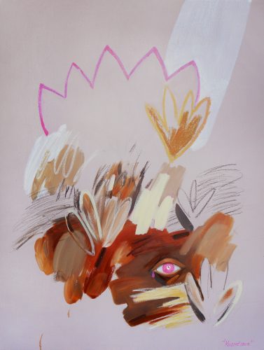 Поява перших весняних квітів (пролісків та рясту) у парках 2022 року відчувалася як гостре зіткнення з фактом, що життя триває попри системне руйнування. У травні купівля моїх улюблених півоній у місцевої бабусі стала переломним моментом. Я використала велике полотно розміром 150×150 см для картини «Рожеві півонії», щоб встигнути зафіксувати їхній аромат і вітальність, поки ще мала таку можливість. Рожевий став основним кольором серії, проявом стійкості та ствердженням життя всупереч стражданню.