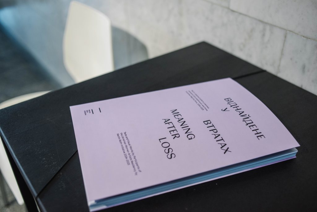 У роботах відображено повсякдення під час війни, досвід біженок, осмислюються травми і трансформації ідентичності. Деякі роботи представляють фантазії про альтернативні суспільства і способи життя — візії, що допомагають опиратися жорстокій реальності. Але червоною ниткою крізь усі проєкти проходять свідчення того, як мистецтво допомагає в боротьбі з травмою і як підтримка зв’язків всередині спільноти стає джерелом сили в часи крихкості і втрат. У резиденції взяли участь мисткині з Києва, Харкова, Львова, Івано-Франківська, Миколаєва, Запоріжжя, Хмельницького, деякі з них — внутрішньо переміщені особи з Луганської, Донецької і Херсонської областей. Усі учасниці здебільшого продовжують працювати в Україні під час повномасштабної війни — у сферах сучасного мистецтва, театру, кіно й літератури. Результатом їхньої співпраці, спільного проведеного часу й дискусій стала друкована двомовна збірка проєктів «Віднайдене у втратах» / Meaning after Loss, яку презентують на відкритті.